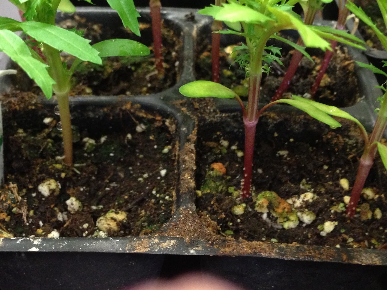 - The French Vanilla Marigolds are making a strong recovery and they look healthier. The purple and brown colours were starting to disappear and a new set of leaves was growing from the stem again.